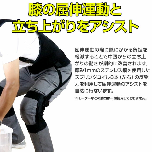 【作業アシストウェア】ワーキングパワースーツ膝サポーター[working power suit KITORA キトラ][送料無料][男女兼用 歩行運動アシスト つまづき防止 作業補助 中腰作業アシスト 立ち上がり楽チン ブラック フリーサイズ]